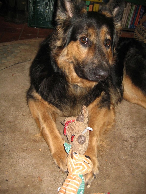 Gestern sah ich dann eine Frau mit älterem Schäfi um 5, der hatte auch einen wärmenden Mantel an.