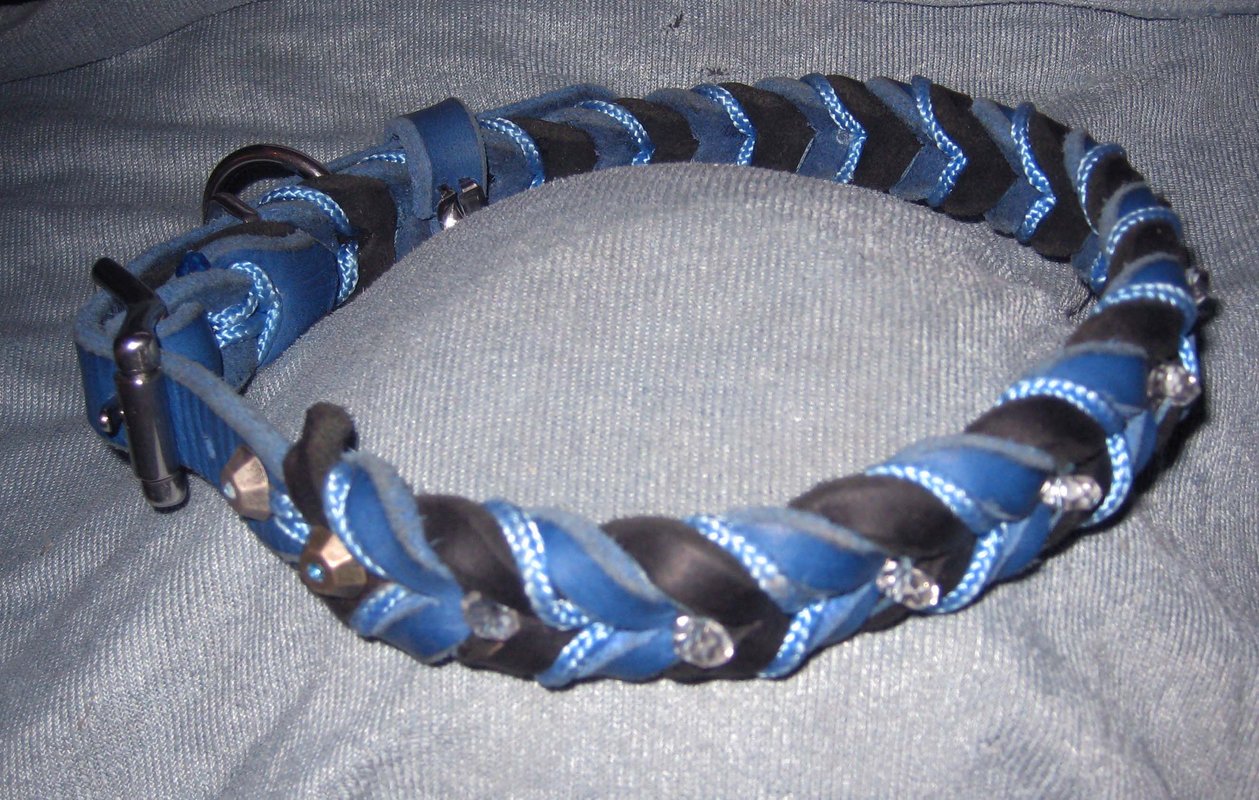 und apropos Lederhalsband. Das ist das neuste Werk (der Glitzer ist kein Bling-Bling, sondern Bergkristallrondelle):