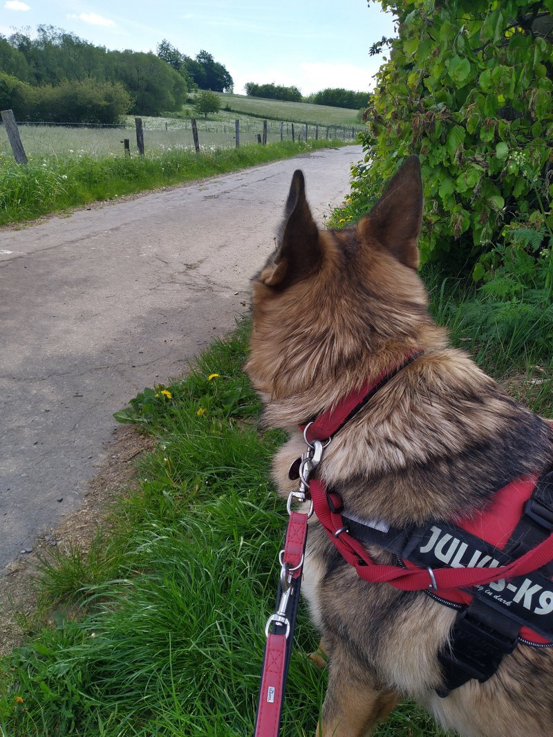 Das Halsband ist dabei auch nicht kaputt gegangen, das ist bombenstabil, sondern an dem Verstelldings weitet es sich von selbst und wird größer und da hat dann der Kopf durch gepasst. Das war kein aktives „ich stemme mich mal gegen die Leine und ziehe meinen Kopf da raus“ und auch kein kaputtgehen des Materials. Mein Freund hatte das geschlossene Halsband samt Leine dann in der Hand und das ging so schnell, da war nichts mehr zu tun, außer dem Hund nach und ihn einfangen.