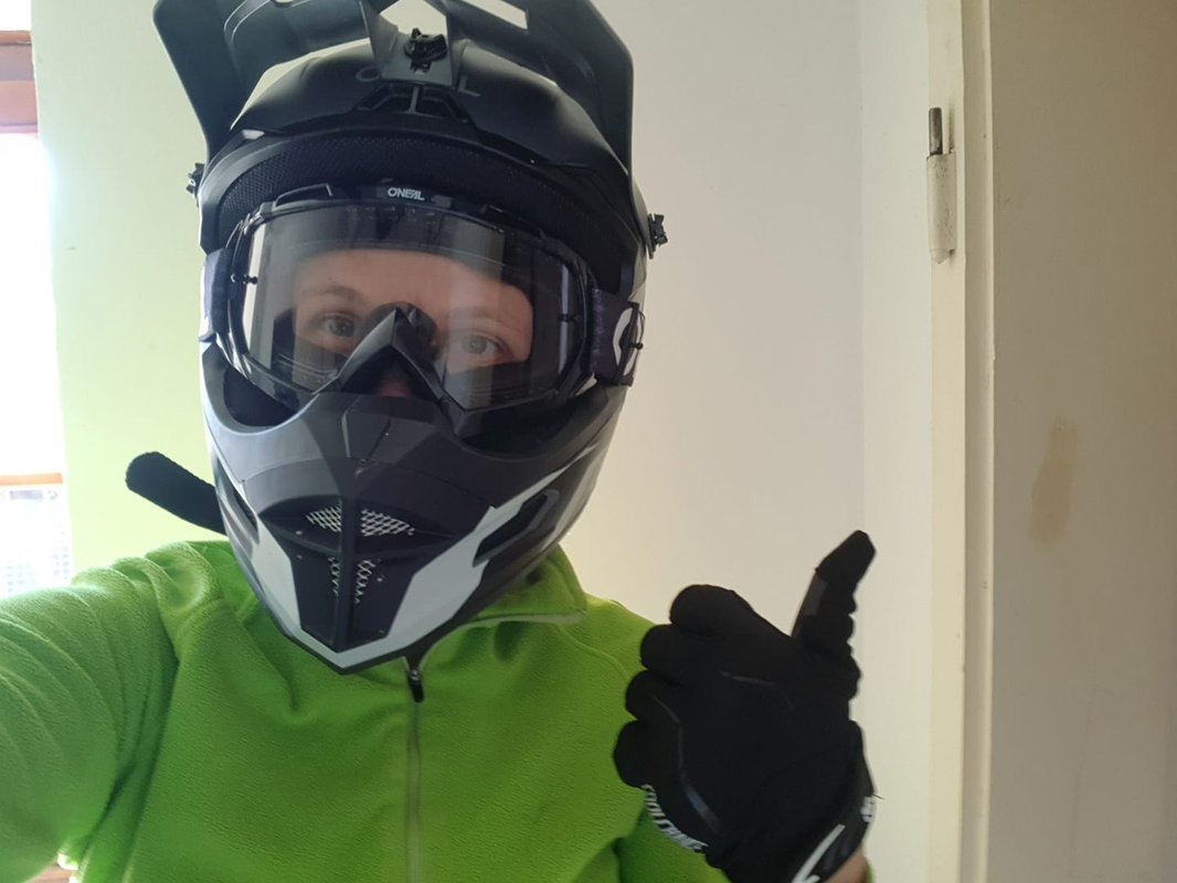 • Und nach einigen Versuchen gab's dann auch ein Upgrade für meine meine Sicherheitsausrüstung . Downhill MTB Helm, MTB Sicherheitsbrille und Gepolsterte Handschuhe. Seitdem habe ich mich übrigens nie wieder hingelegt :rolleyes: