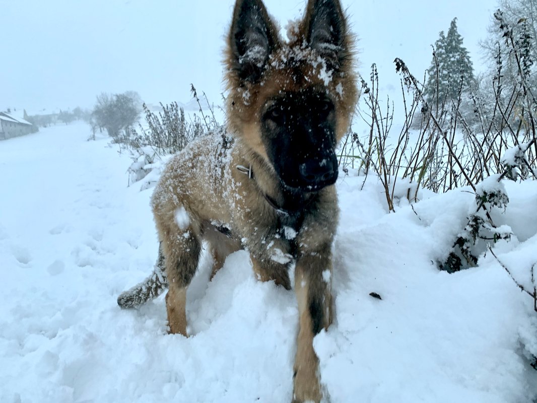 Gerade beim Schneespaziergang ist er so durchgedreht, dass er nur noch wild nach mir geschnappt hat. Entsprechende Reaktionen von mir. Dann Blut im Schnee. Er hat seinen zweiten Zahn verloren. Und es tat mir sooo leid, dass ich das nicht eher realisiert habe und verständnisvoller mit dem kleinen Kerlchen umgegangen bin.