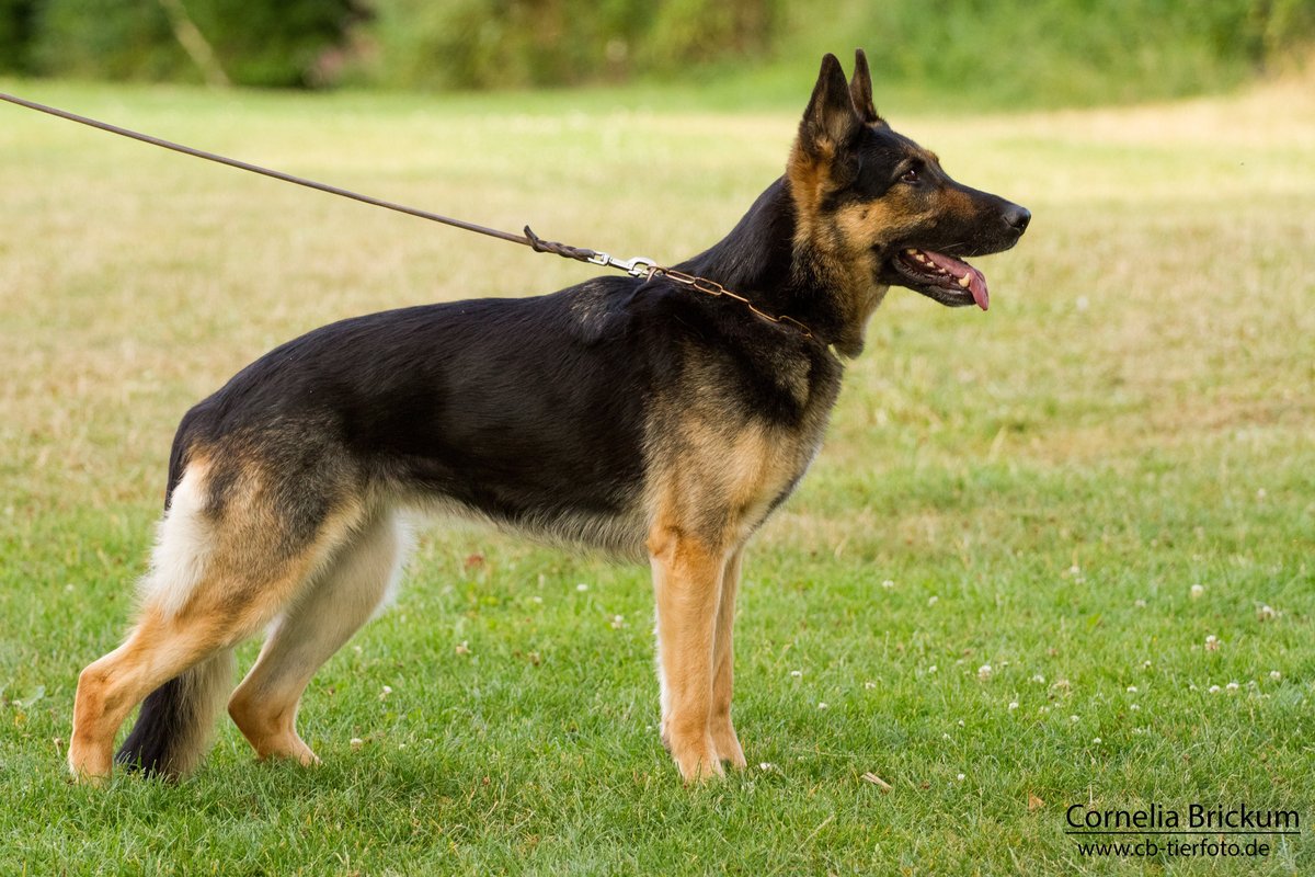 Schafring, ich werde es nie verstehen, warum man die DSH für spezielle Fotos z.B. SV Zeitschrift o. auf Zuchtschauen usw... immer so hinstellen muss. Das gefällt mir einfach nicht, wenn dann die Kruppe so jäh nach unten abfällt. Wer findet das schön. Ich weiß, das ist das offizielle Bild des DSH.