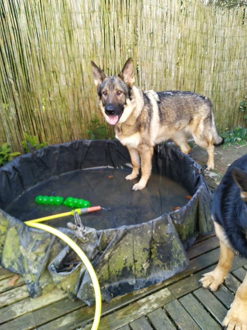Dario ich frag heute abend meinen mann, wie der hersteller heisst und schreib ihn dann hier rein. Unserer hält nun schon das 2. Jahr und da gibt es nichts zum reinbeissen oder luft rauslassen. Unter den pool auf jeden fall eine teichfolie legen, dann können die krallen am boden nicht durchpieksen und löcher verursachen (sonst läuft wasser raus). Sam legt sich nach dem gassi dort sofort rein und geniesst das abkühlen am bauch ![]()