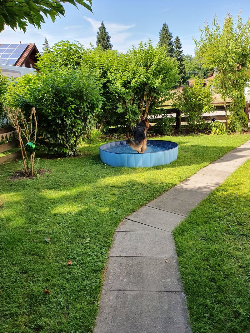 Same here ... Django kratzt wie ein Irrer drin rum ... würde sich aber nie reinlegen. Außerdem fängt er an den Pool zu "beißen" ... er verbellt ihn und beißt in den Rand.