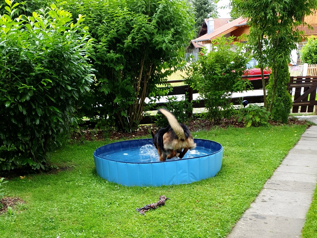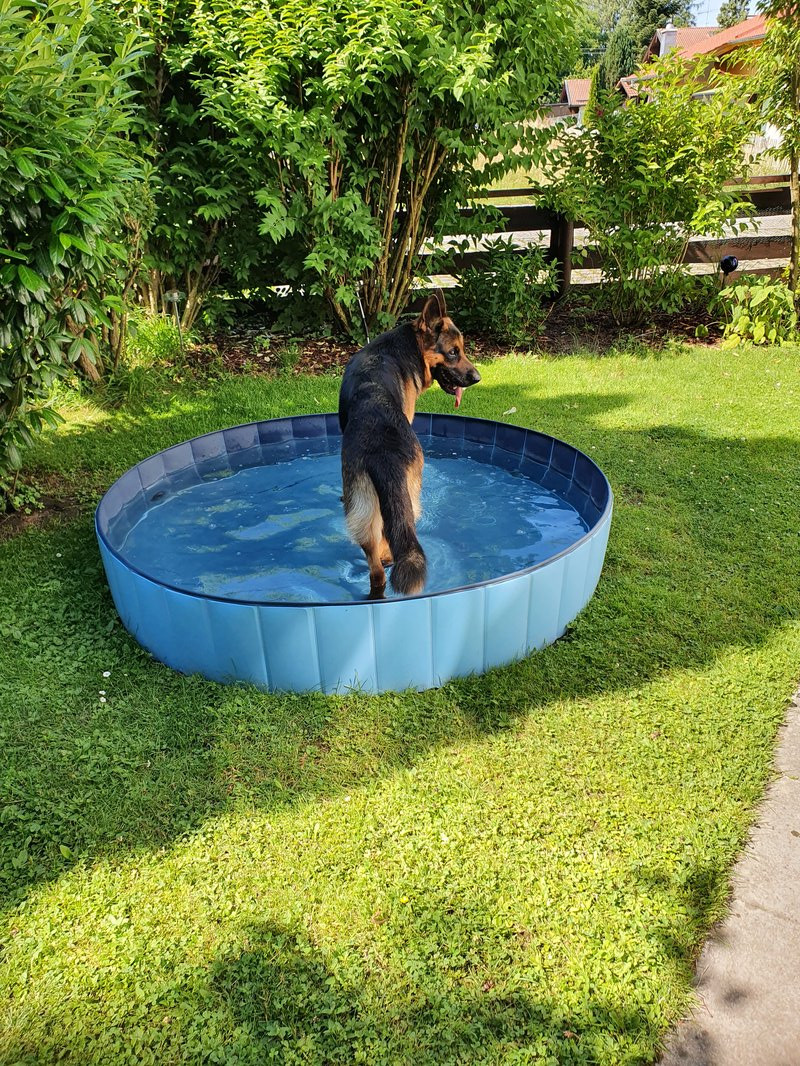 Same here ... Django kratzt wie ein Irrer drin rum ... würde sich aber nie reinlegen. Außerdem fängt er an den Pool zu "beißen" ... er verbellt ihn und beißt in den Rand.