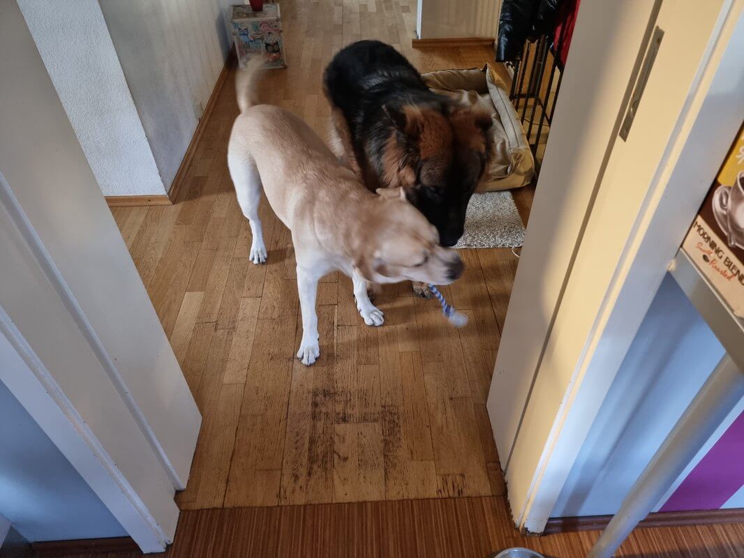 Donna hat als Welpe einfach nur zuviel Futter bekommen.... ich hatte da keinen Einfluss drauf, da ich voll im Job war und meine damalige bessere Hälfte dem Hunde zuliebe halbtags gearbeitet hat. Nach ihrem ersten Geburtstag hatte sie aber nix mehr... naja... bis dann die letzten zwei Jahre anbrachen. Aber Ellenbogen und Hüfte war in Ordnung.