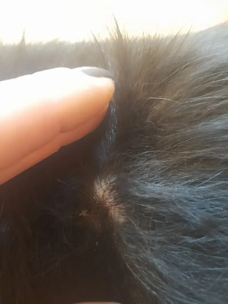 Ich häng das Foto mal an, auch wenn ich gar nichts darauf erkennen kann, außer Haare und eben der Kruste. Vielleicht sieht ja irgendwer was, was ich nicht sehen kann.