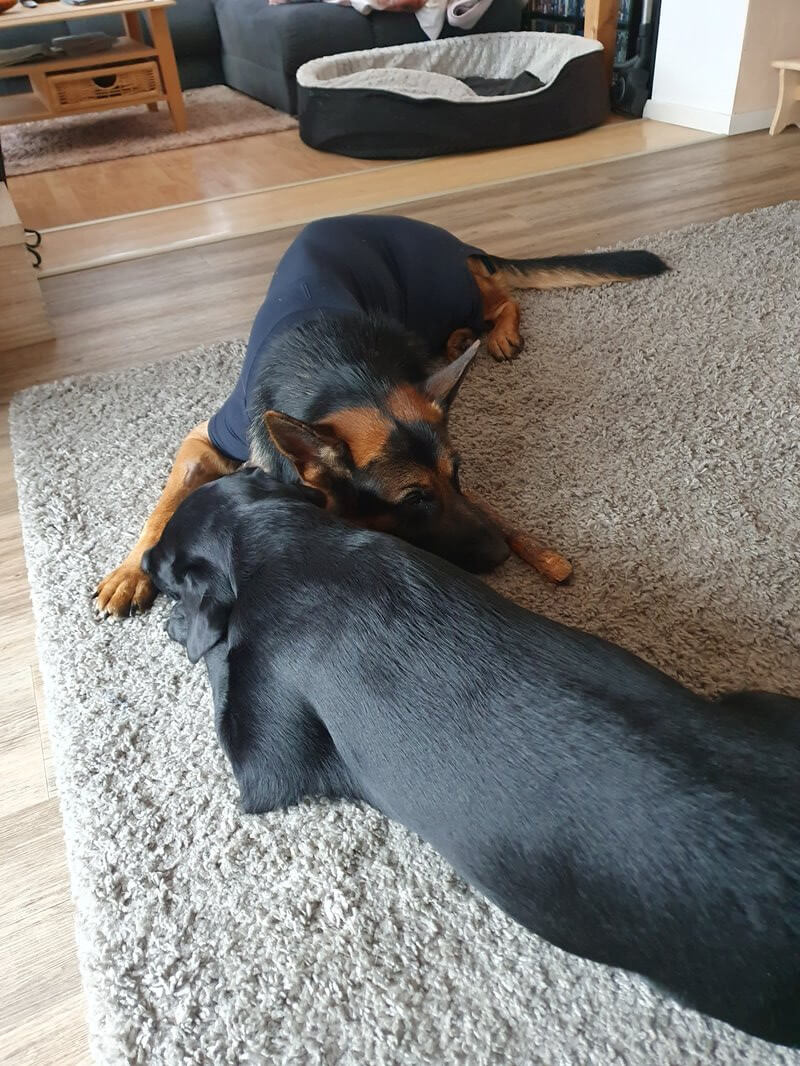 ja jetzt kommen endlich beide langsam zur ruhe. Die hundebetten haben wir auseinder gestellt. Wo ist mein bett? Ich brauch auch endlich ruhe. Ich glaub diese woche hab ich ein paar graue haare bekommen ![]()