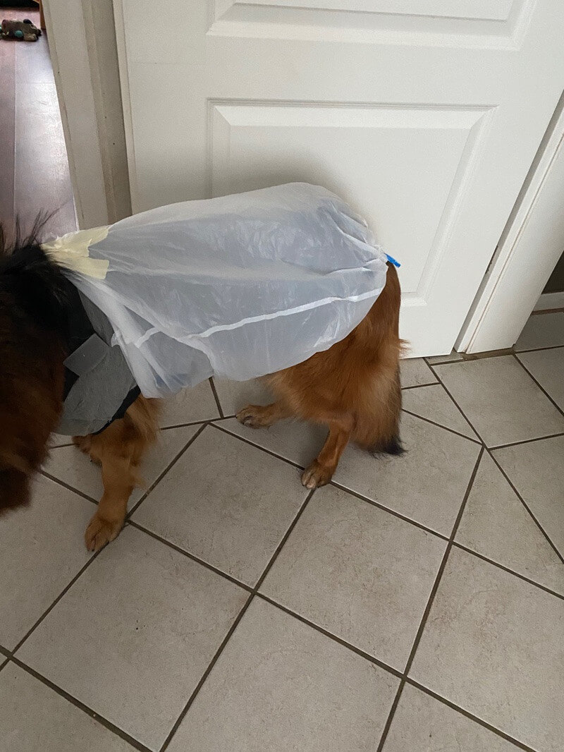 Lotta war nicht begeistert , weil das ja auch so knistert, aber es funktioniert. Alles trocken da unten 👌🏿