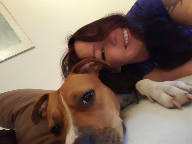 Ich bin Marina , BJ 77 und teile seit 8 Jahren mein Leben mit meiner AmStaff-Mix-Dame Abbie