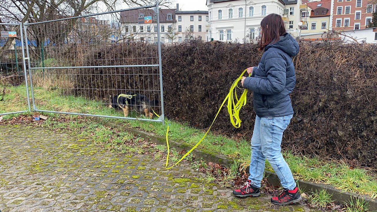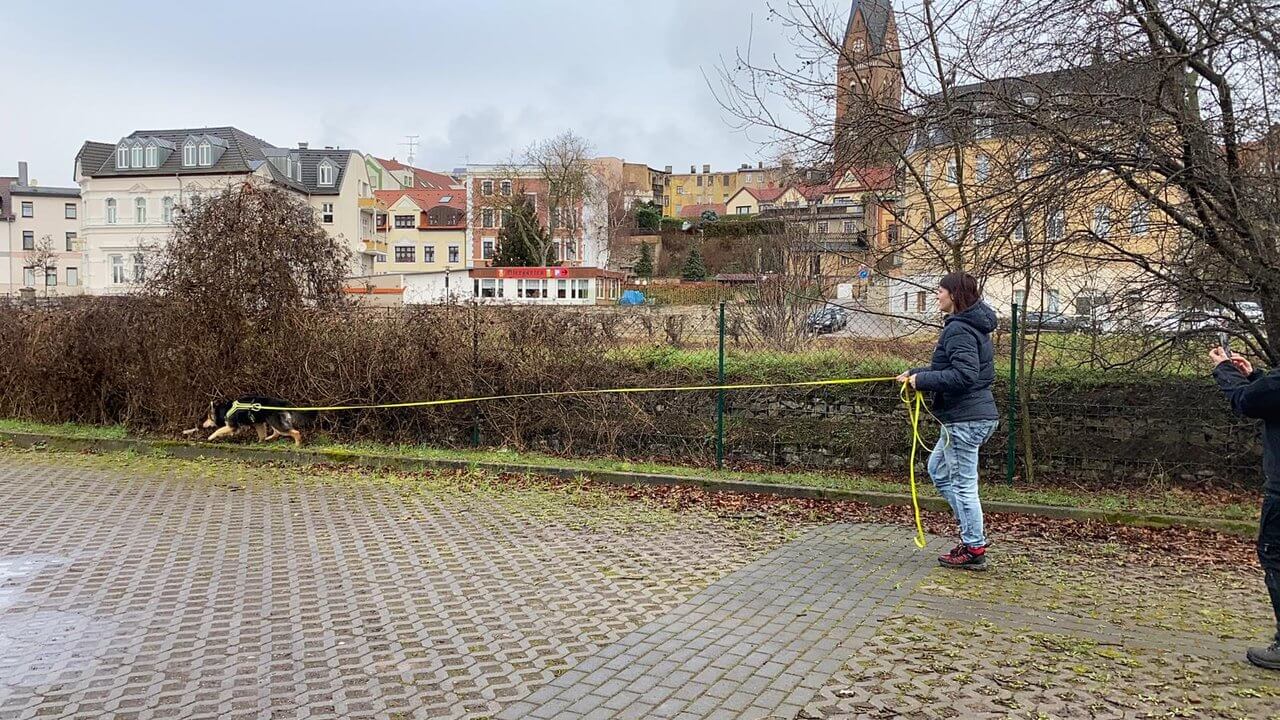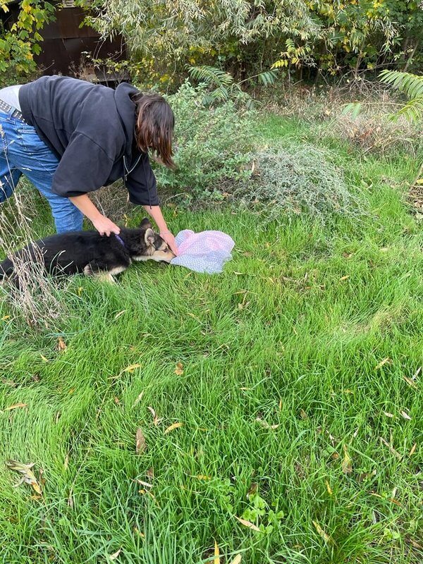 Dann beim nächsten Training lag das tuch da aber sie hat nicht mehr gesehen wo die person war ansonsten blieb das Prozedere gleich. Erst da haben wir dann auch geschirr und leine an den Hund gemacht vorher war alles ohne damit sie sich erstmal eine Verknüpfung aufbauen kann. Da sie sich an beiden null gestört hat gings dann immer mit leine los.