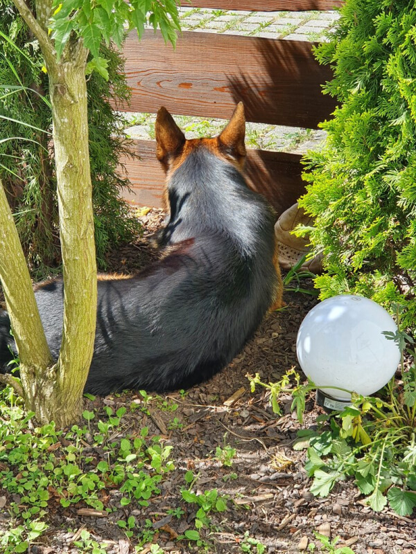 Der Rüde war bis zum Wechsel wie die Mutter, schwarze Decke und Rest rotbräunlich, danach wie der Vater fleckige schwarze Decke wie auf deinen Fotos und untenrum hellbraun. ![]()