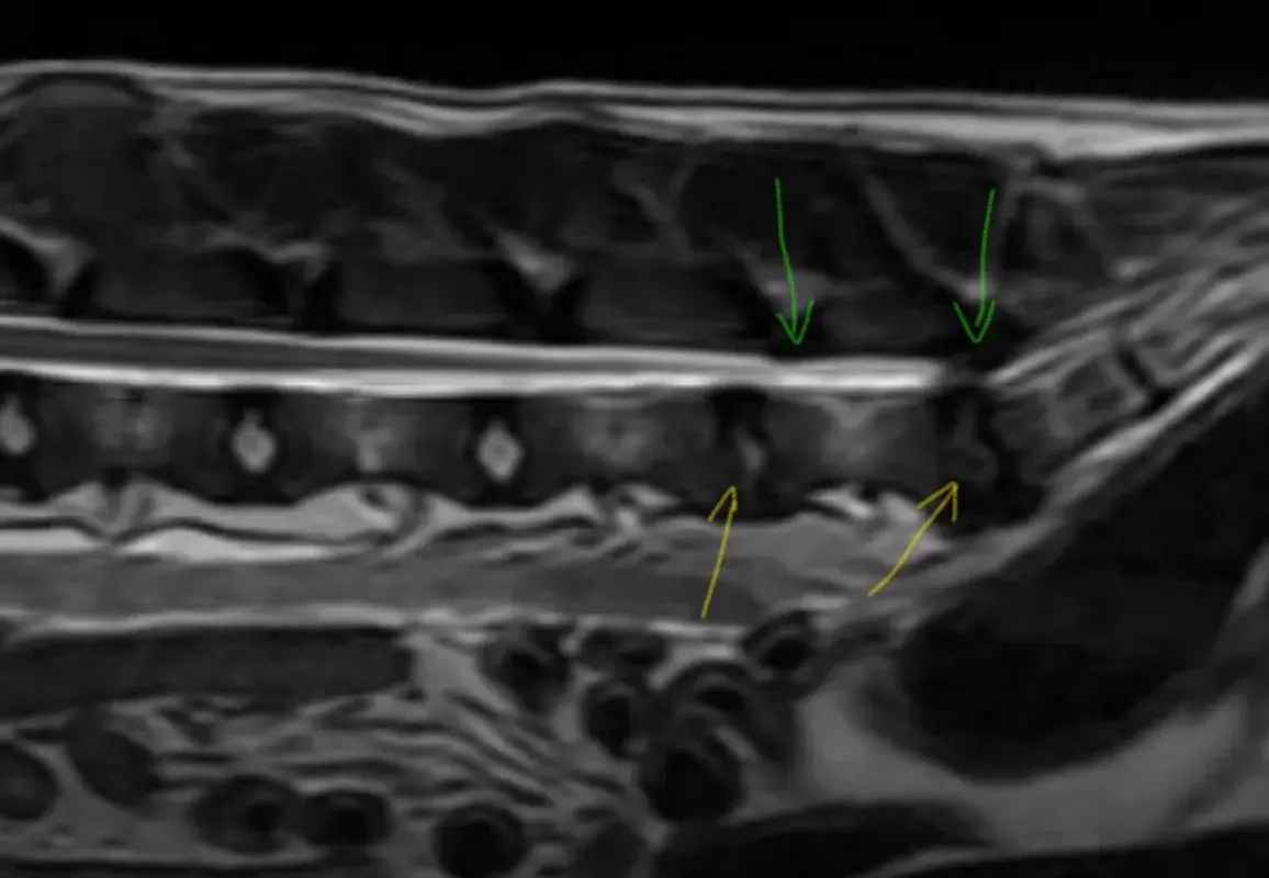 Meine Nachforschungen haben ergeben, dass die meisten Hunde mit Bandscheibenvorfällen, kleine Hunderassen sind, zumeist die von Chondrodysplasie betroffenen Rassen.