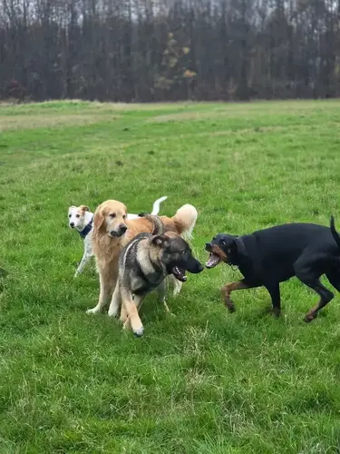 Wenn ich mit ihm unterwegs bin, loben ihn die anderen Hundehalter öfters, entweder für sein Aussehen oder für sein Wesen. Über die Jahre haben sie wahrscheinlich viele negative Erfahrungen mit Schäferhunden gemacht, da ist Argos wohl eine willkommene Abwechslung. Das Pubertier versteht sich mit allen und will am liebsten mit jedem spielen. Windhunde und Bulldoggen haben es ihm besonders angetan. Er spielt auch mit intakten Rüden, was mich besonders verblüfft hat. Das bin ich von meinem hypersexuellen Seelenhund gar nicht gewohnt 😄