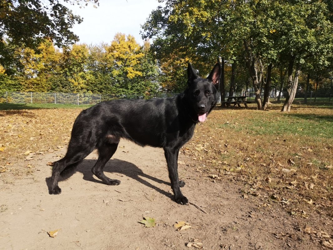 Onyx ist nun 1 1/2 Jahre alt und fängt langsam an ein Schäferhund zu werden. Er winselt viel öfter, meist wenn er sich zamreißen muss oder wenn er ungeduldig wird.