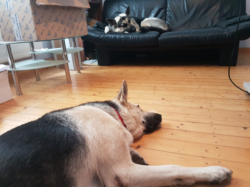 das liegt bestimmt daran, dass der Rüde noch so jung ist. drei Tage und Nächte haben die beiden ununterbrochen gejault, gestöhnt, gebellt und geheult. Man bin ich froh, dass das vorbei ist...