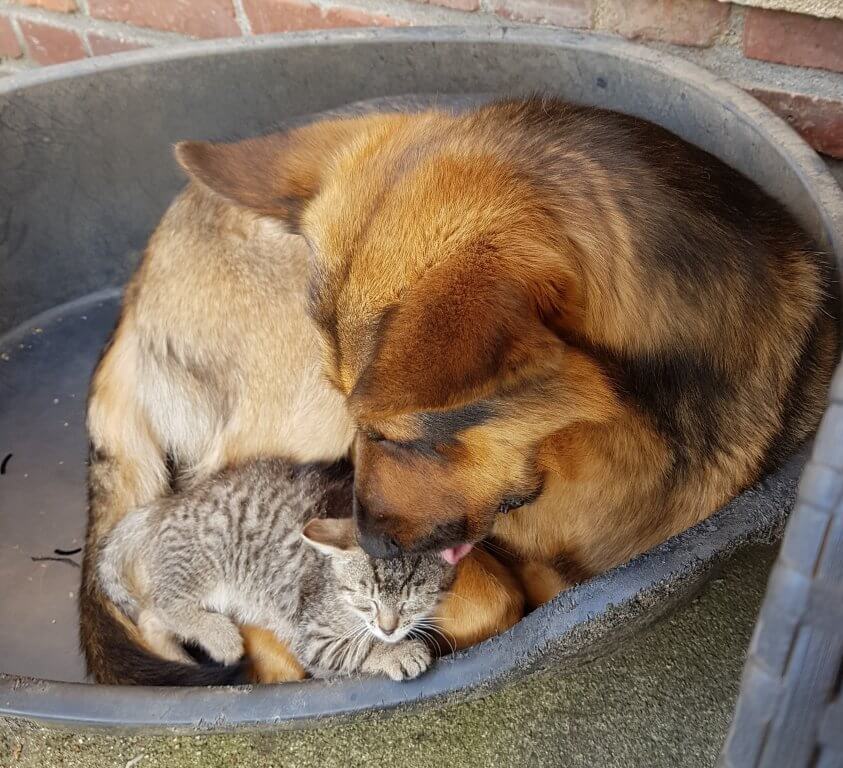 Auf dem Foto seht ihr Charlie und seinen neuen Freund Kater Willi... die beiden haben sich gesucht und gefunden. Sie teilen sich mittlerweile auch das Hundebett