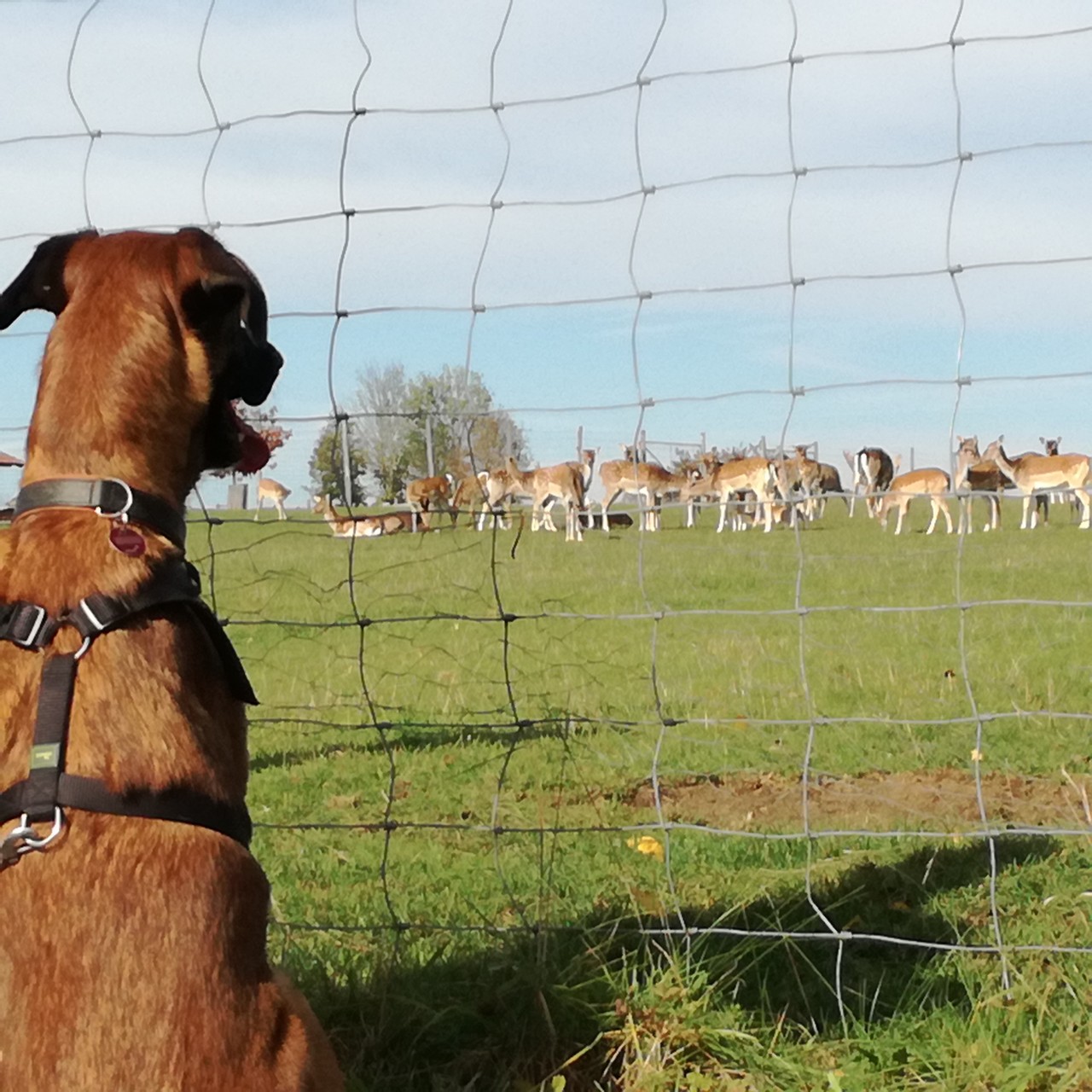 Bo hat inzwischen mehrere Hundebegegnungen gehabt und es ist alles gut verlaufen. Den alten Freund unserer verstorbenen Lana hat er kennengelernt, ein unkastrierter Rüde. Der hat ihm auf seine souveräne und ruhige Art erklärt, dass er rüpelhaftes Verhalten nicht schätzt, aber sonst gern mit ihm toben würde. Und dann war alles gut und sie haben toll gespielt. Auch mit den Damen kam er gut klar, ein Galgo-Mädel war sehr angetan von Bo, wohl weil der mit ihrem Tempo mithalten kann. Tolle Verfolgungsspiele waren das, so schnell konnte man gar nicht schauen, wie die gerannt sind.