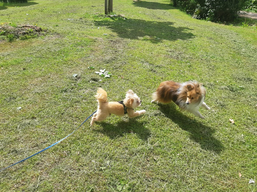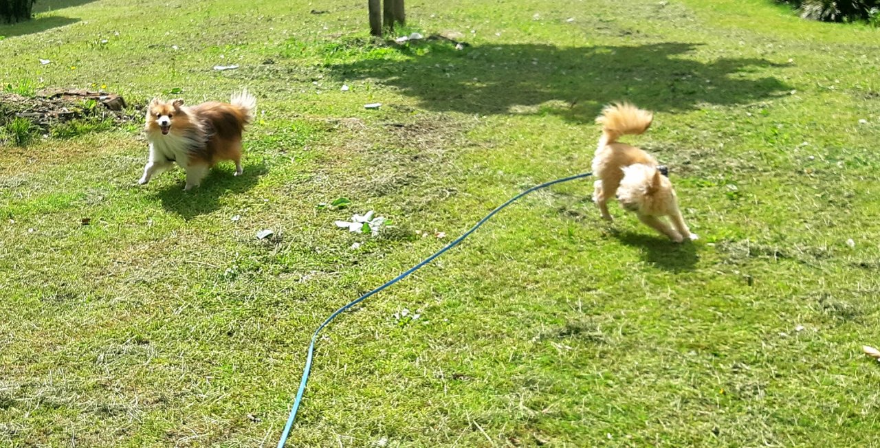 Da waren sein Freund und mein Gassihund Morpheus da,sowie ,,mein" Teilzeitschafpudel Bounty.