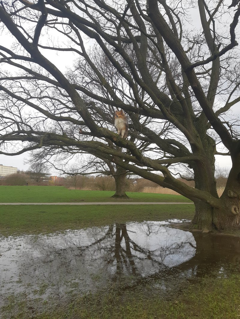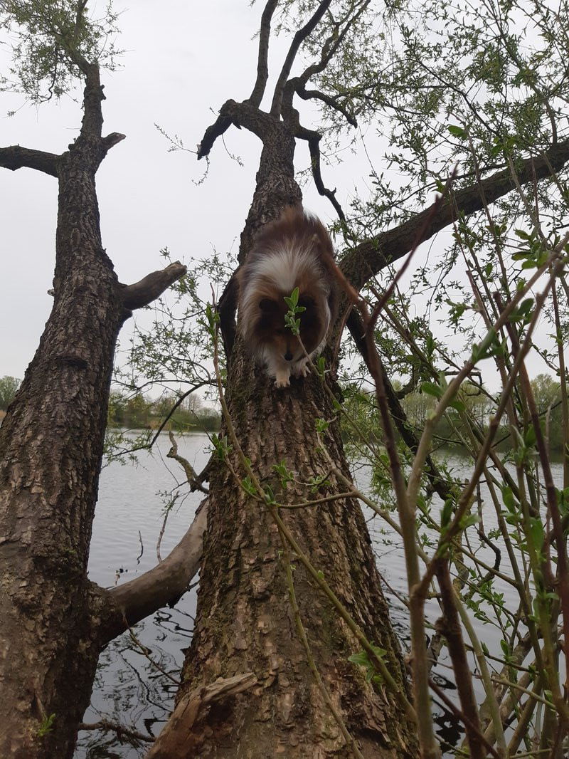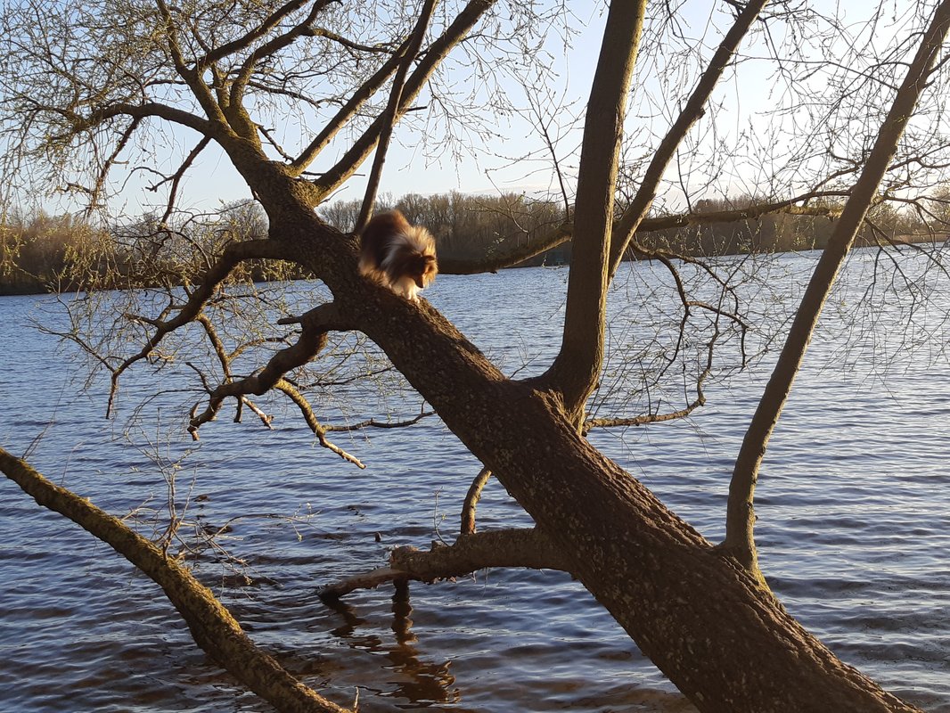 Er wollte nicht gerne schwimmen,also kletterte er auf diesen Ast,und lief dann ständig hin und her 😅🤦🏻♀️