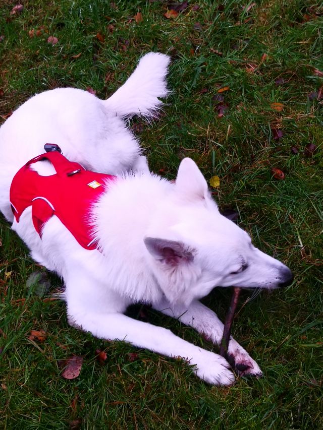 aber Sprung von Ida zur Seite kommt halt gerade nicht so gut...Die Wasserflasche, die ich zur Manierenunterstützung zur Zeit mitführe, war auch machtlos. Die letzte Ecke vor dem trauten Heim, ungefähr 100 m von der Gartenpforte entfernt.