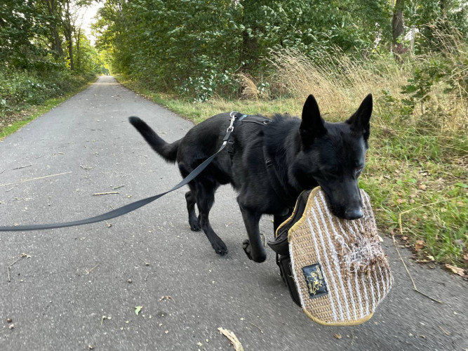 Training läuft zurzeit echt gut. Noch vor ein paar Wochen konnte ich ohne Ramba Zamba nicht durch eine Personengruppe marschieren, er wollte zu jedem hin. Auch andere Hunde haben ihn oftmals total aus der Bahn geworfen und abgelenkt. Jetzt, seit wir Begegnungen auf dem Platz echt immer üben, läufts super. Er geht mittlerweile an der Futterhand durch die Personengruppe und ist dabei frei. Meine Trainerin hält ansonsten die Schleppleine, um zu sehen auf welche Reize er noch stark reagiert. Lustigerweise hat er aber kein einziges mal versucht, abzuhauen zum anderen Hund etc. Er ist sehr motiviert, spult meist seine ganzen erlernten Dinge ab um zu gefallen, Bellt auch vor Freude bevor er an die Futterhand darf. Ein Hund ist während des Trainings immer in der Ablage positioniert. Somit muss Romeo zwischen den Einheiten auf seiner Decke liegen obwohl der andere Hund am Trainieren ist.