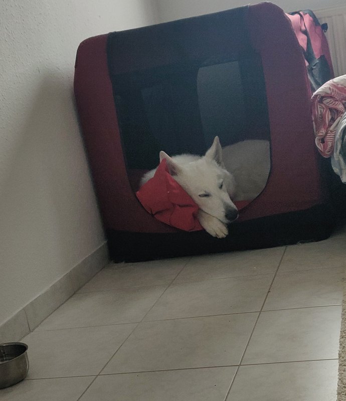 Wow, ich hab keine Ahnung was passiert ist aber gestern war Akani 5 Stunden alleine und heute nochmal 3 und es war nichts??? Es waren zwei, drei Schuhe auf seinem Körbchen aber ansonsten gar nichts, er hat die Türen in ruhe gelassen und auch sonst alles was rum lag, lag auch noch dort. Seit dem letzten Update war er nicht mehr alleine deswegen wundert mich das so. Vielleicht mag er die neue Wohnung lieber wie die alte und ihm hat der Kong gefallen den ich ihm befüllt hatte, oder die Box in die er jetzt so gerne geht. ![]()