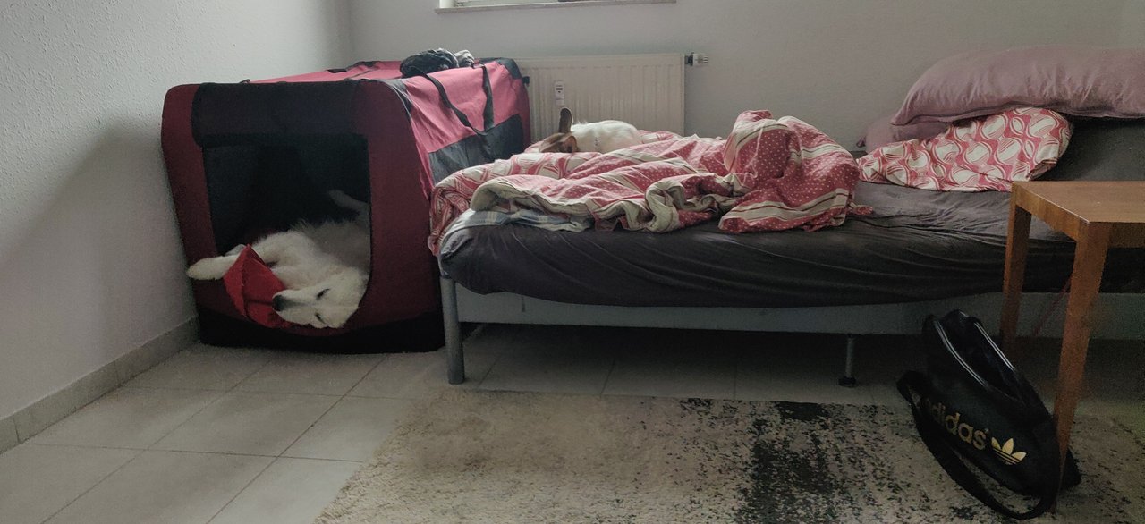 Auslasten konnte ich ihn nicht, da er gerade was mit dem Magen hat (war am Montag beim TA) und ich ihn da nicht zu Körperlich belasten wollte die letzten Tage, ich hab ein paar Futter such spiele gemacht mit ihm aber das war jetzt auch nicht die Welt. Rumlaufen konnte er in der ganzen Wohnung weil sich das Schlafzimmer zum einen nur von einer Seite absperren lässt und zum anderen ich meine Hündin nicht einschränken wollte (wobei die eh nur den ganzen Tag auf dem Sofa liegt). Ich bin auf jeden Fall total erleichtert das, das jetzt so gut klappt, mir ist bei Akani schon öfter aufgefallen das sobald es mal "klick" bei ihm gemacht hat er Sachen immer direkt so umsetzt wie man es möchte, selbst wenn es vorher hundert mal nicht geklappt hat, vielleicht war das jetzt einfach so ein "klick" Moment bei ihm und er hat verstanden das er auch entspannen kann wenn ich nicht da bin.
