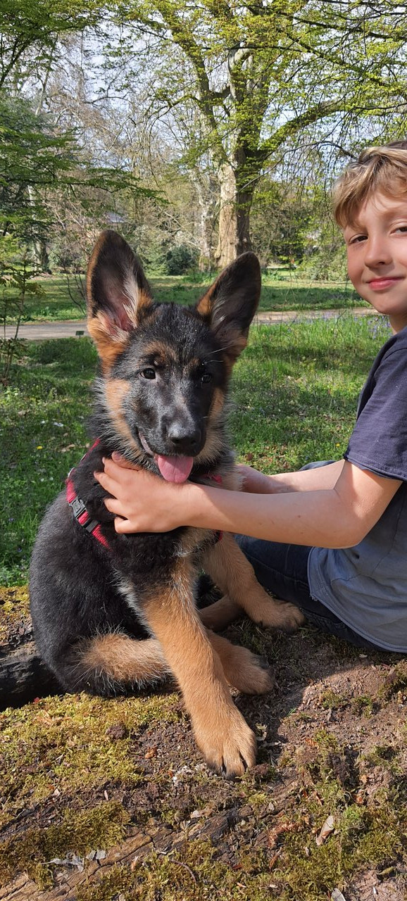 Verbena Das Tara so hell wird hätten wir auch nicht gedacht, Ihr Vater ist ja schwarz aber es freut uns ich finde so siehts mehr nach Schäferhund aus :) Mit meinem Sohn ist echt sehr schön, wie die zwei sich begrüßen, da steht einem schon mal Wasser in den Augen und abends kuscheln die beim Fernsehen.
