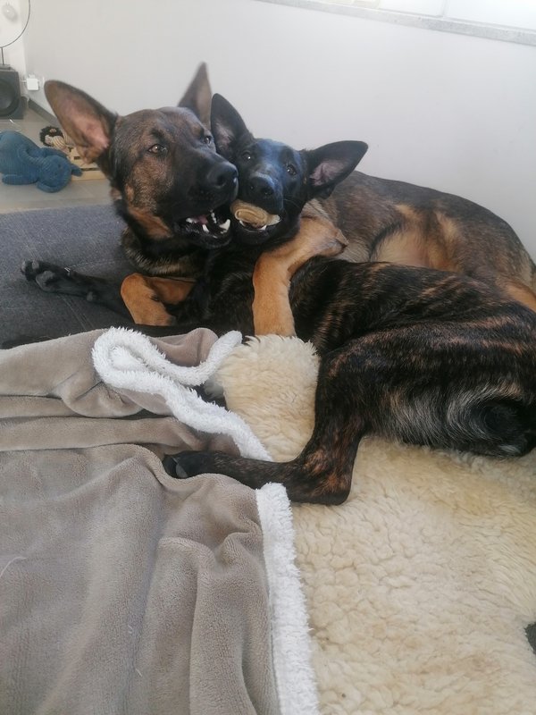 Auch mit der kleinen zusammen im Haus alleine bleiben. Aber das machen wir nur wenn wir wissen, dass er nicht solange alleine wäre dass er Stress bekommt weil er sich dringend lösen muss. Also so 4 bis 6 Stunden lassen wir den großen auch mal drinnen wenn wir weg sind ![]()