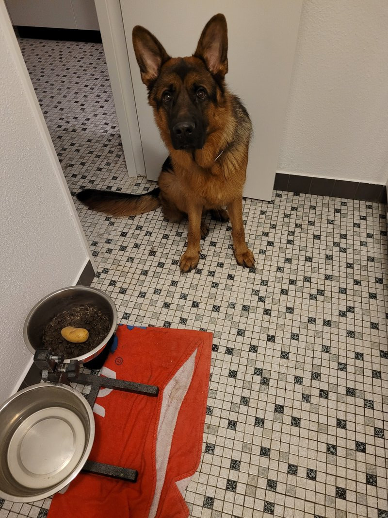 Ich hatte übrigens noch nie einen Hund, der so viele Dinge frisst. Der Darmverschluss damals hat gezeigt, dass Romeo wirklich alles schluckt, was er kann. Grosse Knochen bekommt er unter Aufsicht, die frisst er mittlerweile langsam. Er frisst Draussen auch keine Steine mehr, denn wenn er einen Stein gefunden hatte der ihm passt, hat er sich damit verduftet und den Stein geschluckt. Tannzapfen ebenso, geschluckt im Ganzen. Natürlich sind dies Situationen die wirklich selten vorkamen, aber ich musste halt immer aufpassen. Tannzapfen und Steine interessieren ihn mittlerweile nicht mehr. Stöckchen nur noch sehr selten. Kleidung ist ausser Reichweite gelagert von Romeo und ansonsten lässt er mittlerweile die Einrichtung im Ganzen, was ihn Gestern an der Brennpaste gereizt hat, weiss ich nicht. Aber er frisst ja auch Plastickdeckel wenn er einen erwischt, Zahnpastatuben reizen ihn auch enorm, wenn ich die Zähne putze, wartet er immer gespannt vor der Toillettentüre, in der Hoffnung, er bekommt was.