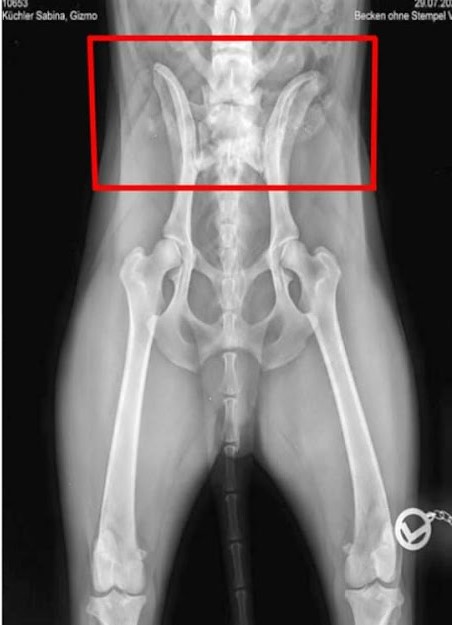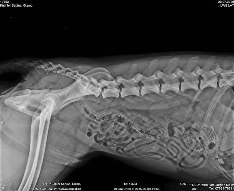 Das Ganze mit den Wirbelsäulen-Auffälligkeiten trat ja auch erst auf, nachdem Gizmo sich bei einem Spiel mit Collie höchstwahrscheinlich eine Bauchspeicheldrüsen-Prellung geholt hatte.