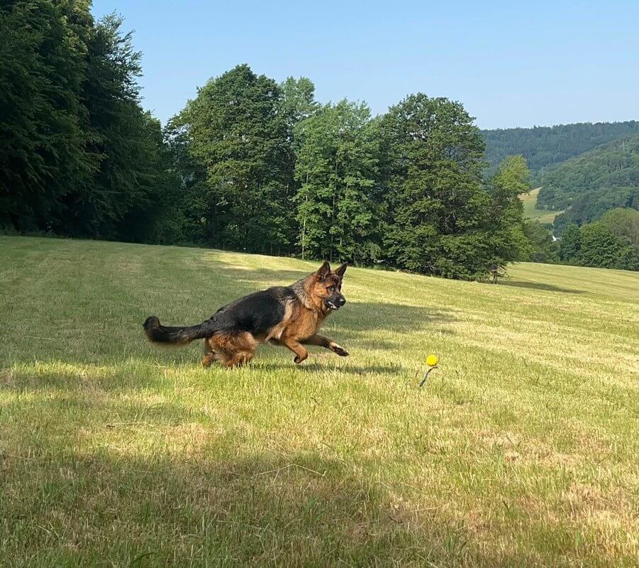 Ares ist 11 Monate alt und im Alter von 10 Wochen zu uns gezogen. Da ich absoluter Neuling auf dem Gebiet des Schäferhundes bin, freue ich mich auf viele Informationen und Tipps. Ich habe zwar meinen § 11 für die Zucht/Haltung und das Ausbilden von Hunden, aber es ist natürlich etwas anderes, da ich bisher hauptsächlich in der Jadghundeszene aktiv war und weiterhin bin. Da man nie auslernt und ich auch gerne über den Tellerrand hinausschaue, ist es eine spannende Aufgabe und ich bin gespannt, wo uns der Weg hinführt.