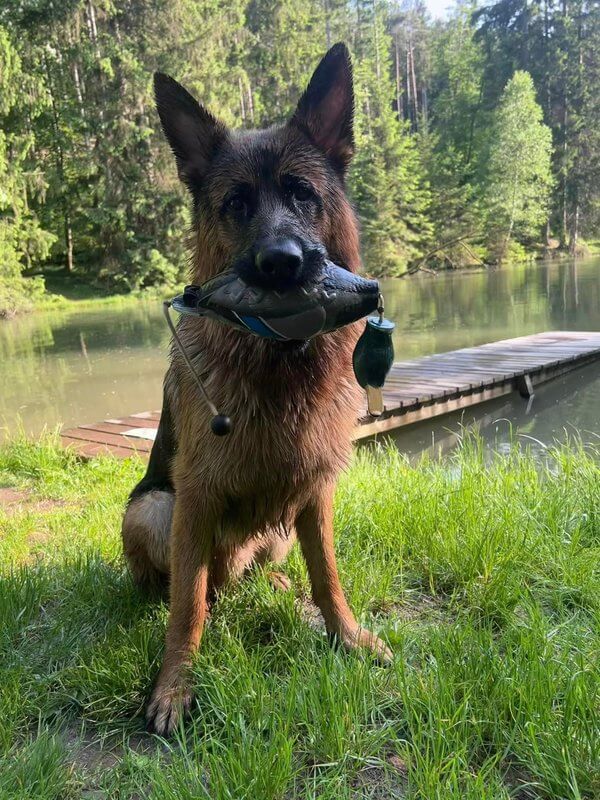 Wir schauen, dass wir ihn altersgerecht auslasten und er liebt es, zu apportieren (kein Wunder, er wächst ja mit Labradors auf). Wir haben uns das Revieren zeigen lassen und auch daran hat er viel Freude. Aktuell nutzen wir hierfür noch Pylonen und Weidestäbe. Leider ist es bei uns wohl etwas schwierig mit Ortsgruppen des SV. Entweder, man hört ständig abfällige Kommentare, weil man keine LZ hat oder es wird leider nicht wirklich trainiert, sondern mehr Kaffee getrunken. Wir haben nach langer Suche eine für uns gute Ortsgruppe gefunden, allerdings ist das eine einfache Strecke von über 160 km und da ist es leider für uns nicht möglich, einmal wöchentlich hinzufahren. Aber ab und an, um sich neue Tipps und Anregungen zu holen geht schon.