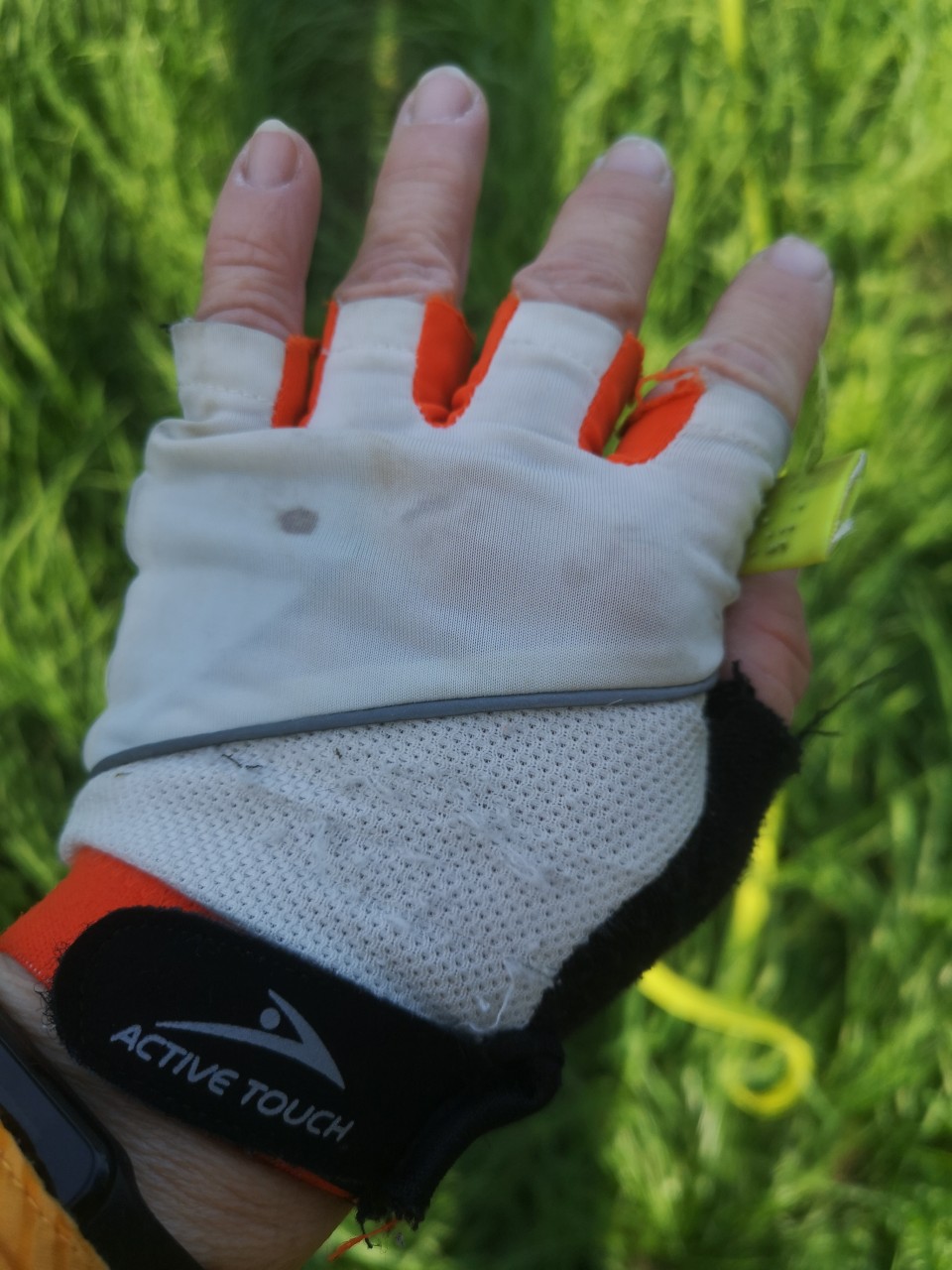 ich benutze Radfahrerhandschuhe, da habe ich die Fingerkuppen frei und kann noch gut Leckerlies verteilen. Außerdem sind die gut in den Handinnenflächen gepolstert.